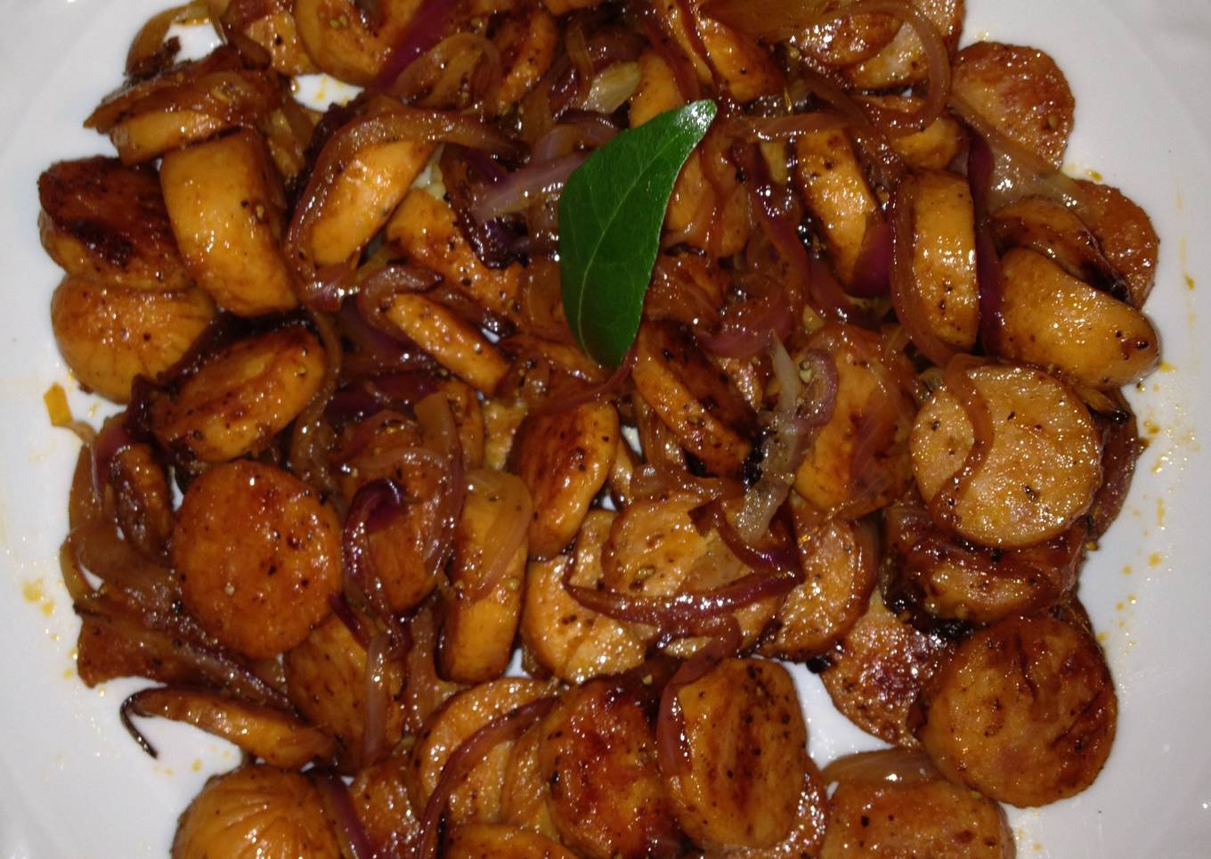 - Add the sliced onion, and cook till they are translucent in medium heat.[tip:add more onions to reduce saltiness if needed.I used this hot dog [Trader Joe’s Uncured Chicken Hot Dogs] http://www.traderjoes.com/fearless-flyer/article.asp?article_id=652" and it wasnt salty at all ]